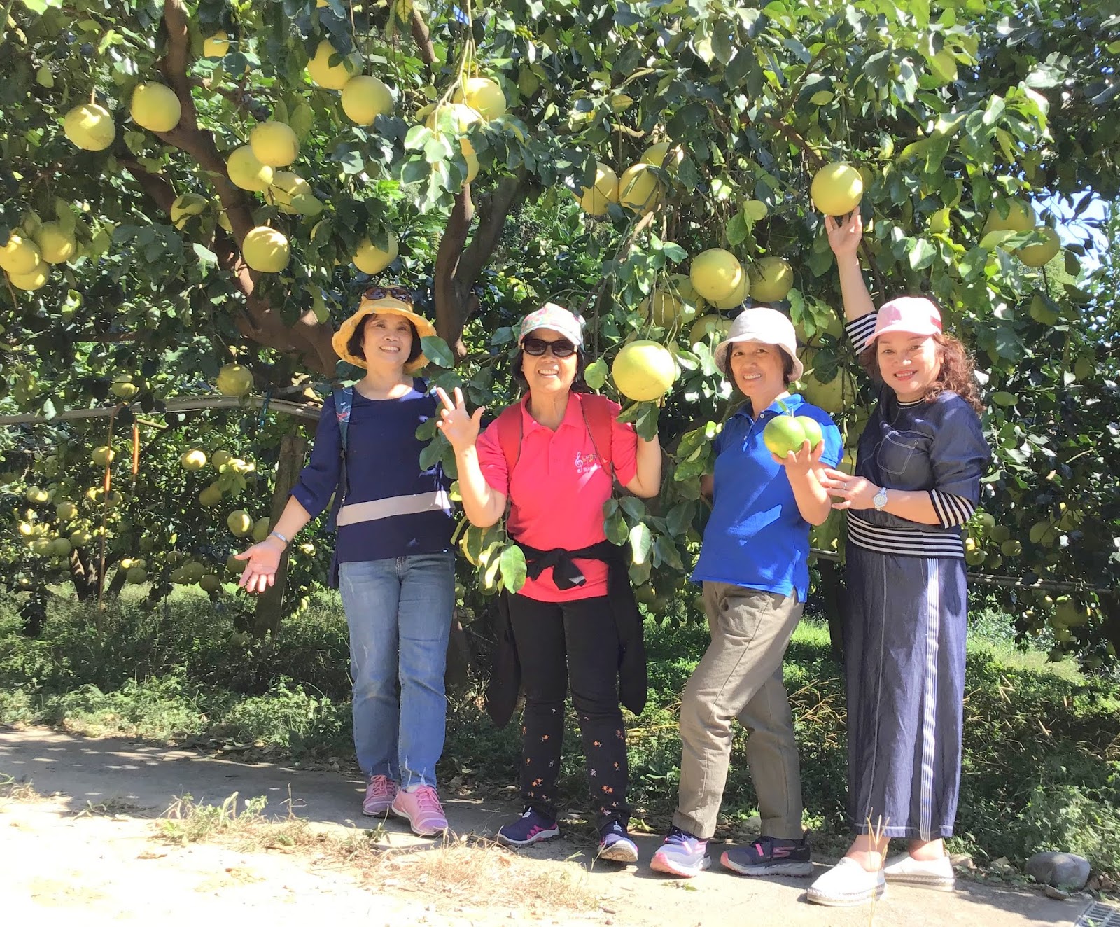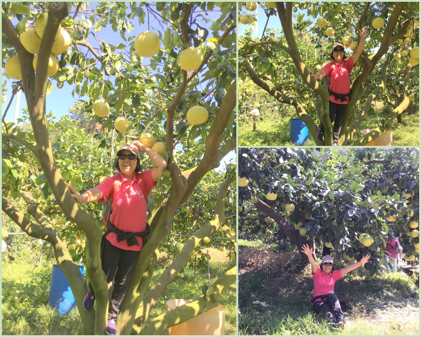 柚樹上,拍照、擺pose 玩得不亦悅乎~~