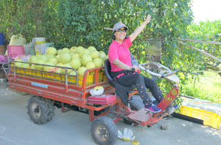 載著一車的柚子,去市場拍賣囉!!