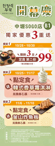 活動二 10/28-10/30,共3天 任點一份定食,第二份享99元加購優惠。(每日限量30套,加購以低價者計)