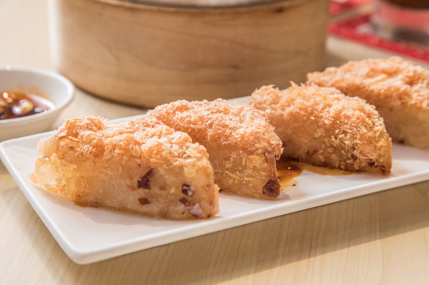 港點大師的蘿蔔糕向來都是看板菜色,這道蘿蔔糕蝦多士更讓蘿蔔糕的美味昇華,蘿蔔糕裹上了蝦漿再炸過,形成酥脆的外殼,與輕甜軟糯的蘿蔔糕有著對比強烈的口感美味呢!