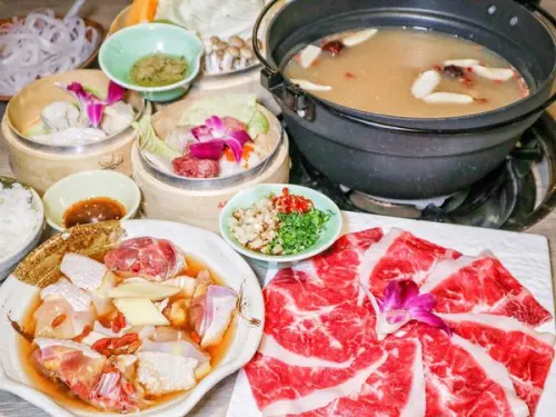 可選擇冬瓜瑤柱火腿湯底、番茄薯仔豬骨鍋、冬蔭功鍋、潮州皮蛋香菜鍋、海素鍋