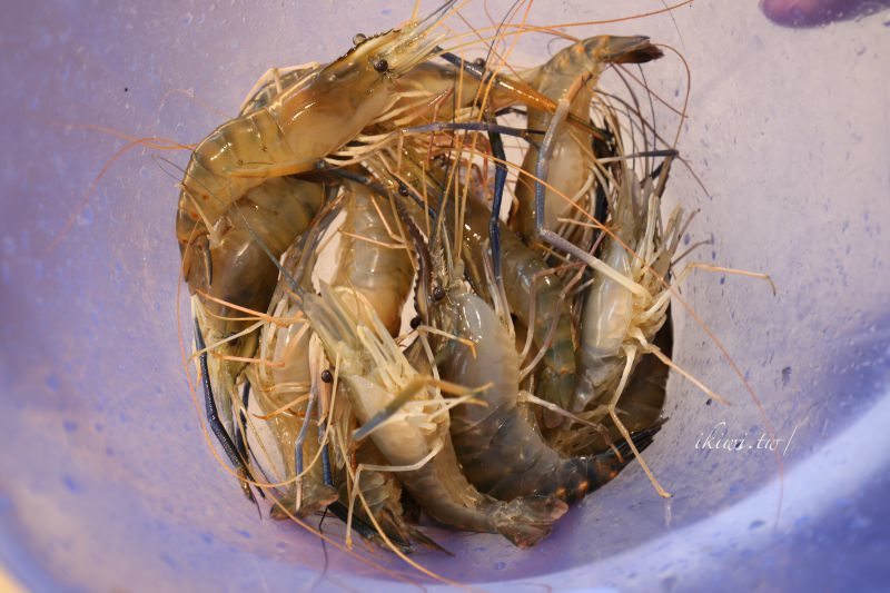 一斤的泰國蝦是滿滿的喔!沒有亂秤或是坐地起價,扣除桶子重量,算足一斤的泰國蝦秤好後,便開始往廚房裡送,豪邁的開始做一系列的火烤,現抓現煮又有回到之前跟朋友一起去外雙溪釣蝦的情景,不僅好吃也是回憶滿滿呢!