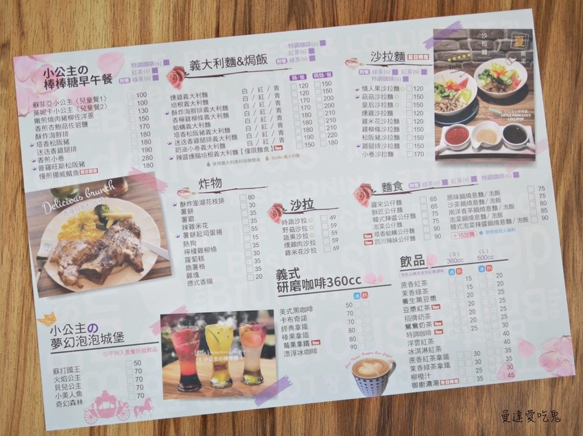 餐點選項非常豐富!除了早餐店常見的蛋餅、漢堡、烤吐司之外,也有丹麥吐司、貝果、公仔麵、義大利麵等,真的光是這兩面的菜單就讓我猶豫了好久,哈!