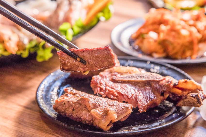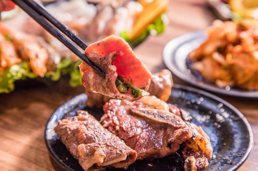 澳洲牛肋條,牛肋因為帶有筋膜,所以要燒烤久一點讓筋膜稍微焦脆化,外層有著微微的焦脆感,略有咬勁的牛肋條越是咀嚼越能感受到那甘美的牛肉肉汁,可以加上些許胡椒提鮮,微微的辛辣感更加誘發油脂的甜度感受