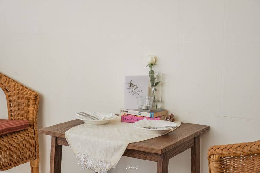 每個座位都擺上了蠟燭、鮮花與書籍,都是可以做拍照道具的。