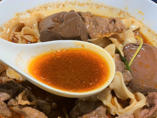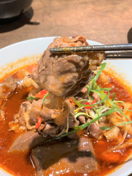 ▼二鬼麵舖 湯拉麵系列:麻辣PR黑牛嫩肩(寬麵)$235元