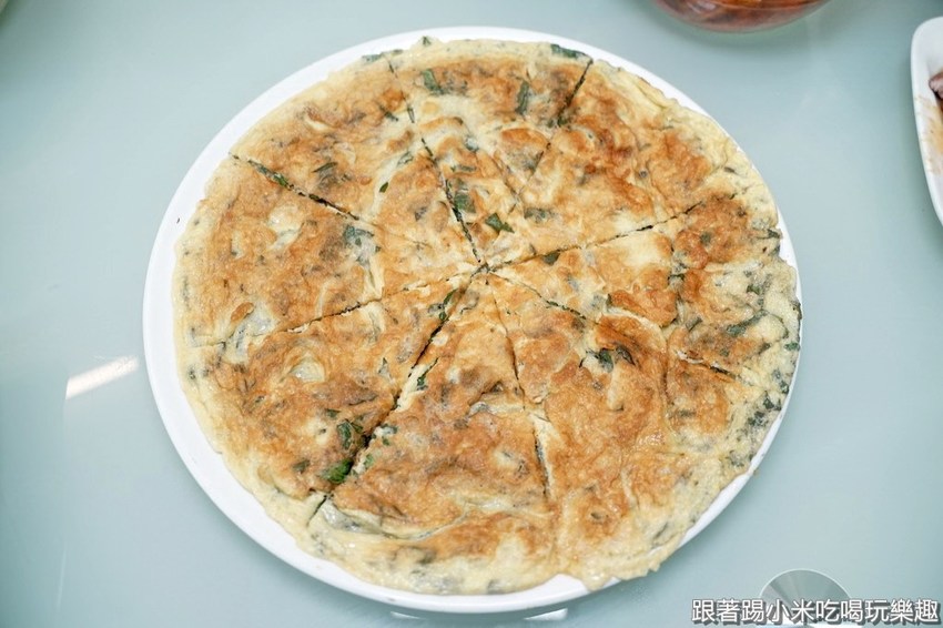 九層塔煎蛋(80元),上桌時熱熱的就聞到九層蛋香了