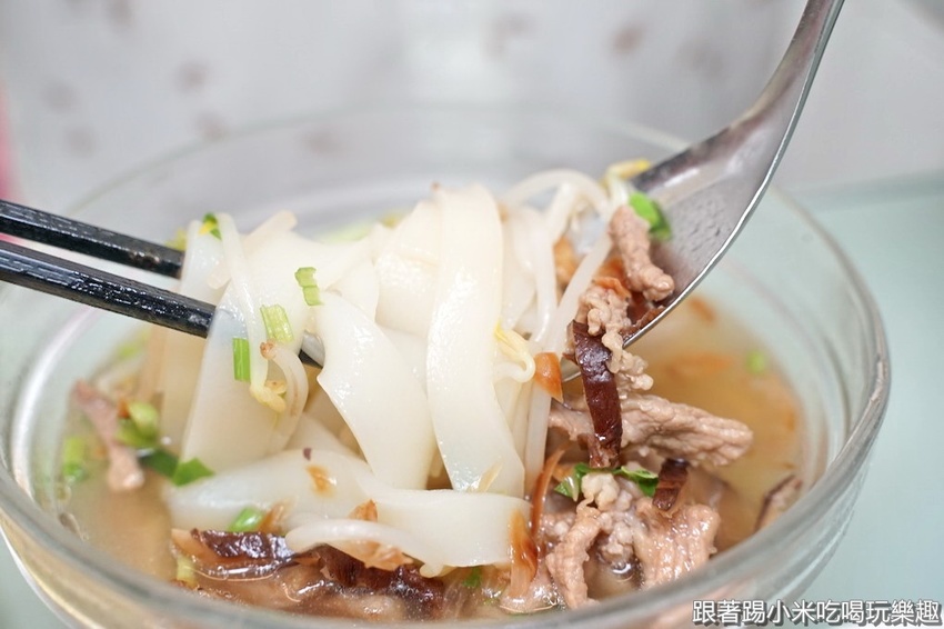 粄條滑溜還帶有一點嚼勁的口感,吸著湯汁相信女孩子會很喜歡~