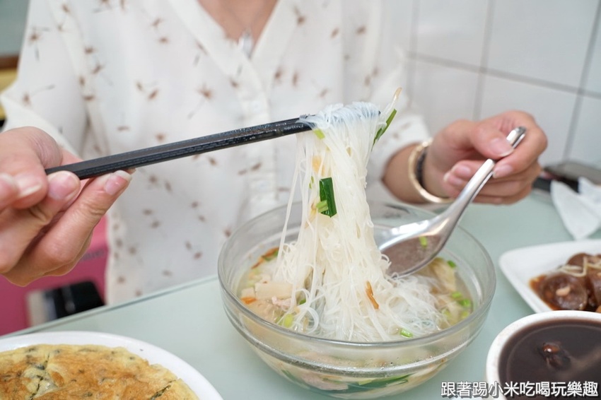 榨菜肉絲米粉(40元),榨菜有脆度而且不是很重口味比較適合小米的胃口,米粉也帶點爽脆的口感唷。