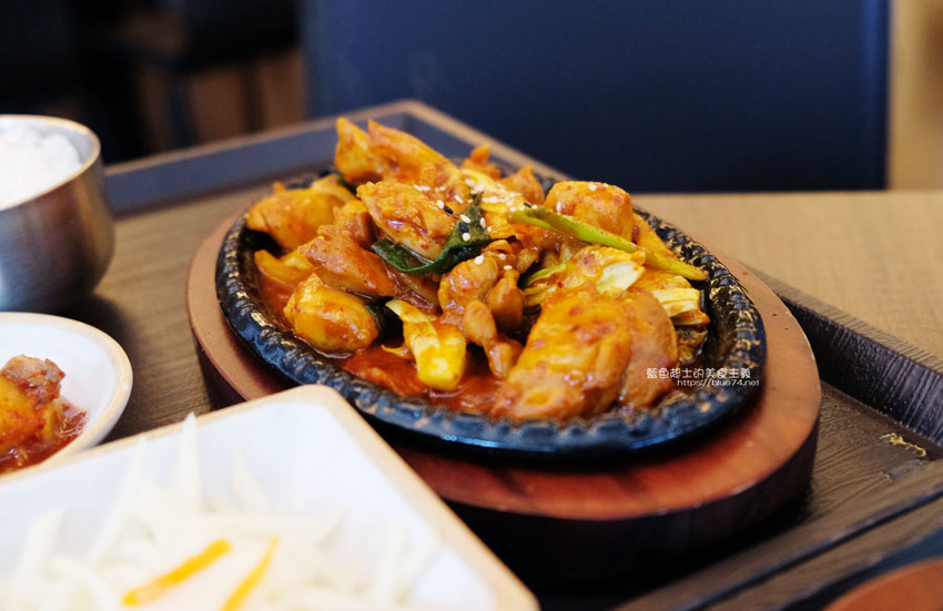 切塊狀的雞排,大小剛好一口咀嚼,口味微甜小辣,我看翁先生吃到後來,汗都滴下來了,不敢吃辣的就點豬五花或豆腐鍋之類的