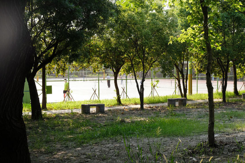 靠近網球場這邊還有彩色塑膠溜滑梯,小朋友不怕沒得溜。
