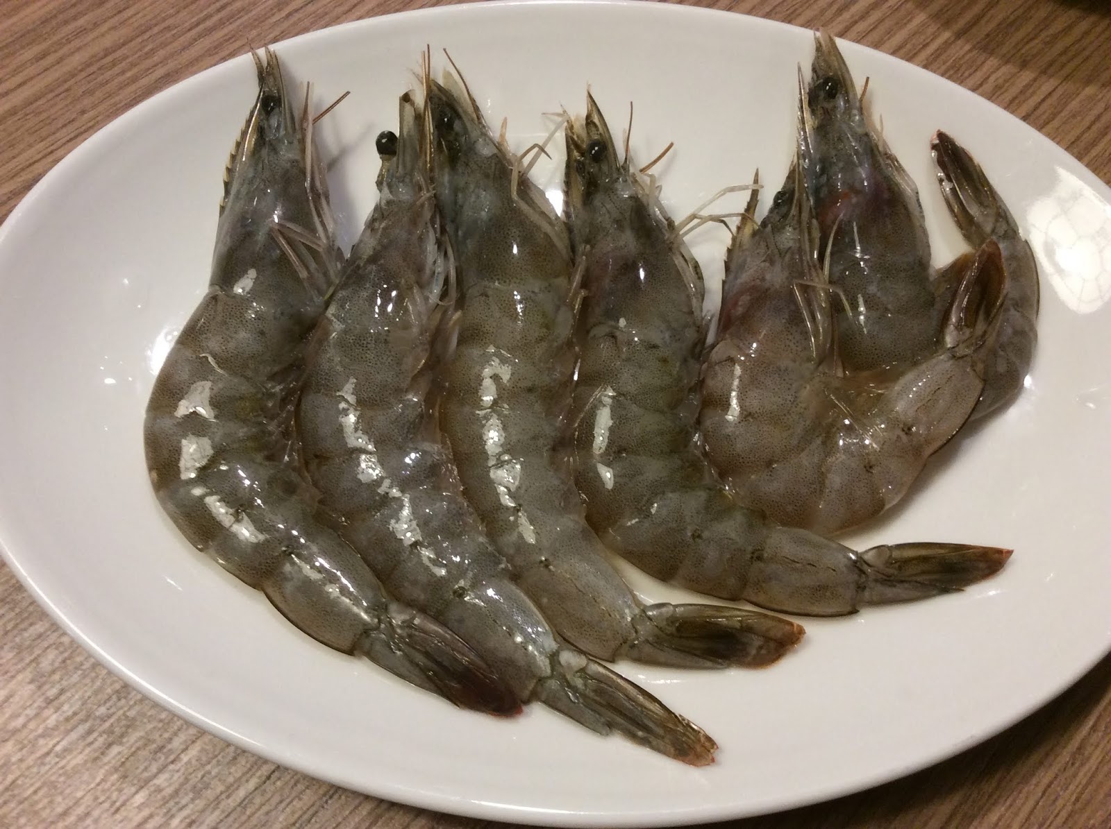 溫體牛肉(大)、草蝦先登場,這會兒火鍋湯已沸騰....