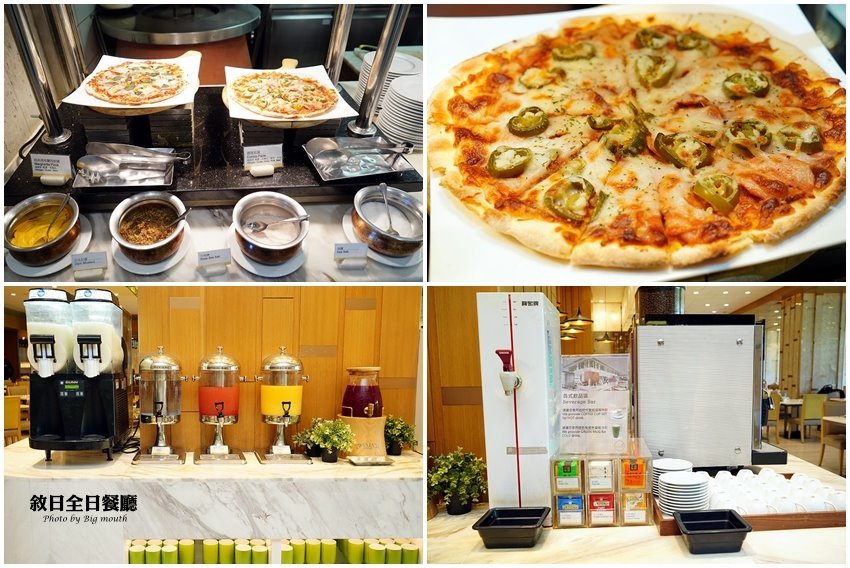 ▼薄皮的總匯披薩、瑪格麗特披薩,是說光是Buffet的份量就夠多了,加上主餐更是不得了,大家一定要把胃空下來才能裝好裝滿啊!另外也有飲料吧,項是新鮮果汁、可爾必思、熱茶等通通應有盡有,精緻又不失美味!