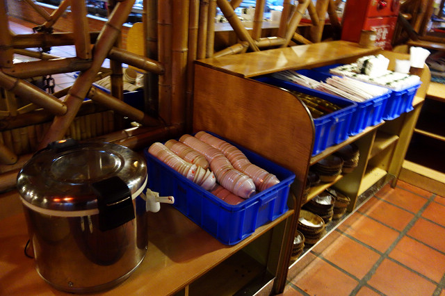 店內的裝潢都是以竹子為主體來打造,有著不同於一般餐廳的格調,在竹子建造的屋簷下用餐,更有著不同的風味。