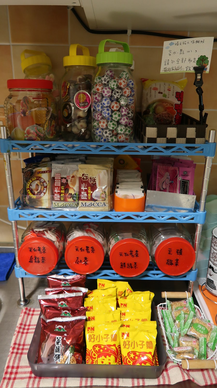 | 民宿貼心提供旅客小點心,包括簡單的泡麵、餅乾、糖果、及沖泡的茶和咖啡, 免費供房客使用,雖然沒有提供早餐,但是小點心很貼心呢! |
