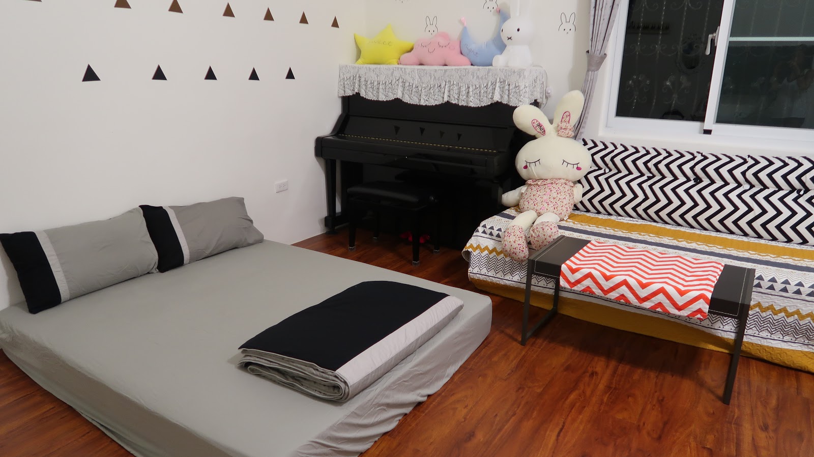 這間是一樓的另外一間雅房,非常適合大家庭旅遊,房間很寬敞, 可以睡到8個大人,房間內還有一座鋼琴可以使用呢! |