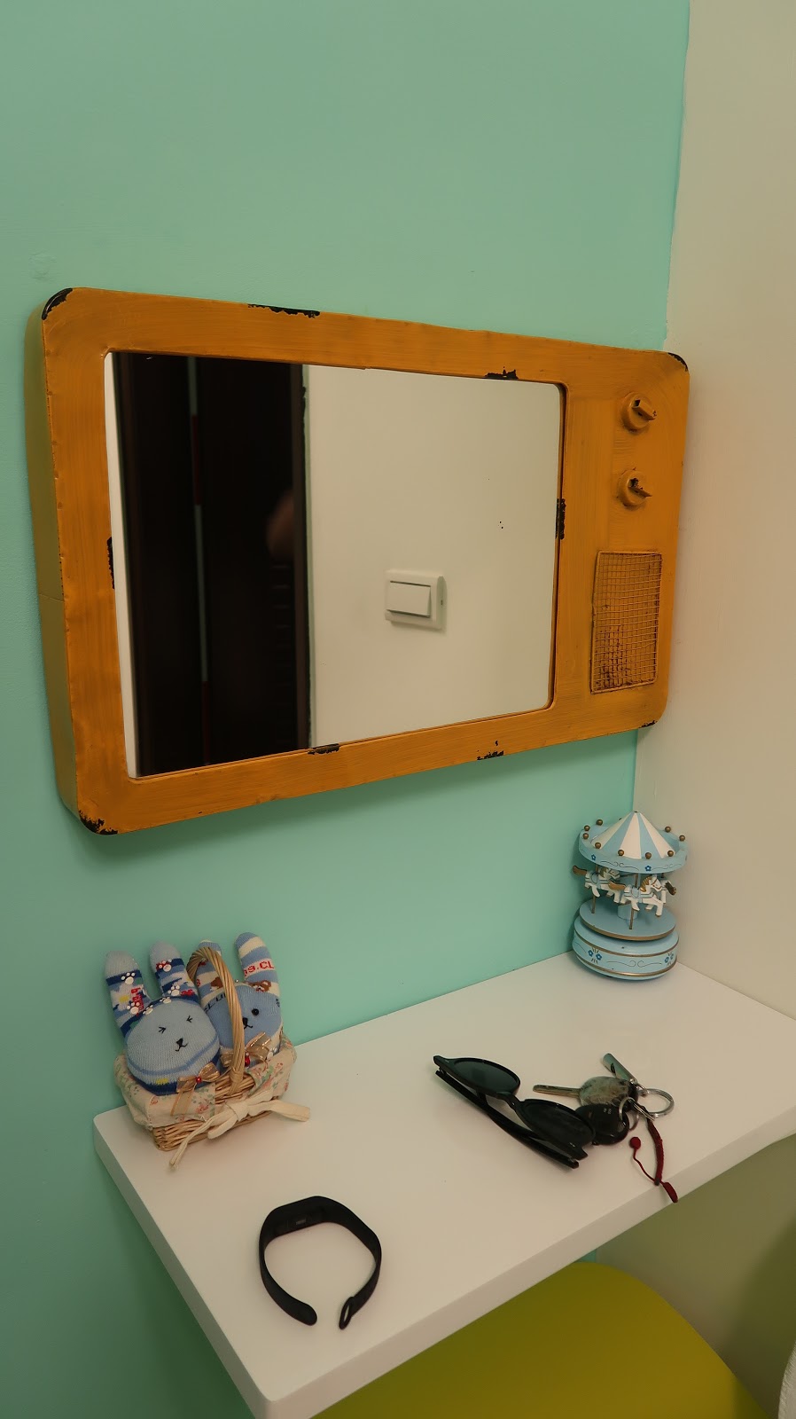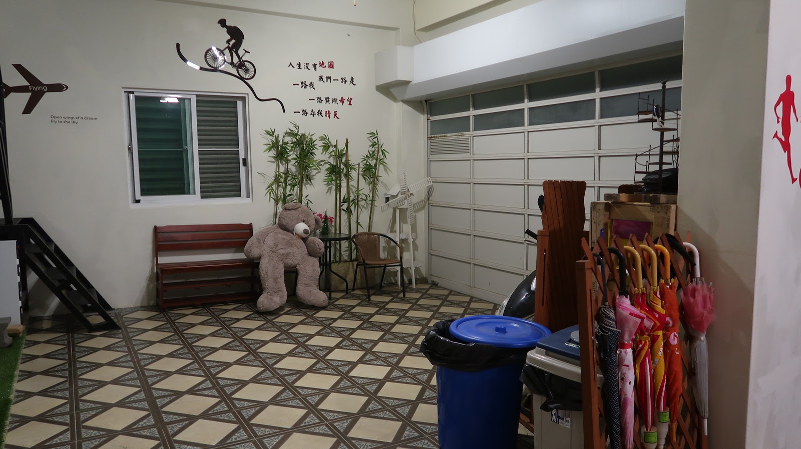 | 一進門,走進去應該是本來的車庫,但是貼心管家設計了一個像玄關的可愛佈置。 |