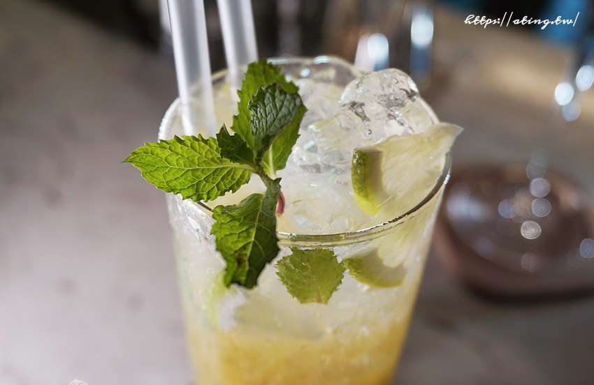 雙果是芒果及百香果新鮮水果為基底,這杯加入新鮮薄荷葉與少許檸檬汁,除了水果香甜外,喝起來擁有沁涼口感。