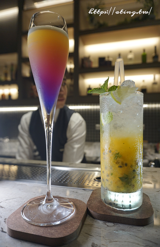 帥氣調酒師晚上才會出現,他滿專注呈現他要給我的無酒精調酒飲品。