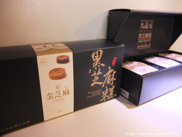 ▲黑芝麻糕是【九品元】招牌糕點,這款(3入/盒)的小禮盒外觀簡約精緻,攜帶方便