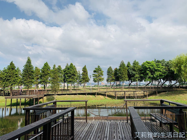 桃園1-4號生態埤塘主要設施包括環湖步道、生態水池、景觀涼亭、木棧道等
