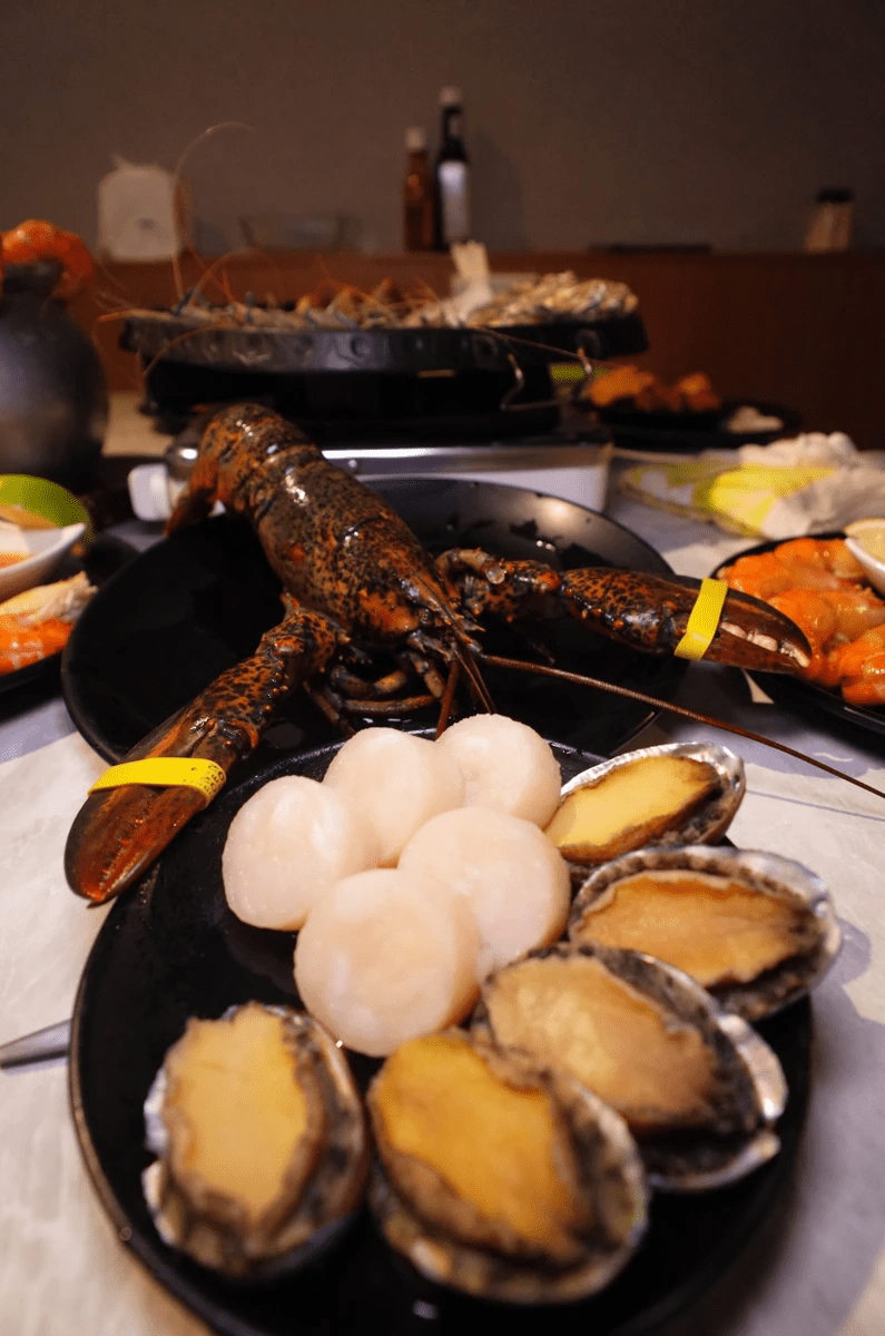 當然店家的優惠絕對不能少,只要親朋好友四人以上預約,蝦犇絕對大氣請客,干貝、鮑魚、波士頓龍蝦、韓式泡菜豬五花,讓你吃到爽~一個手掌大的干貝放上烤盤滋滋作響,一口塞進嘴裡,新鮮甜味在口中散開,讓人回味無窮!韓式泡菜豬五花烤至微焦黃金色,酥脆又具嚼勁的口感,配上泡菜解膩,再來一杯啤酒超順口~