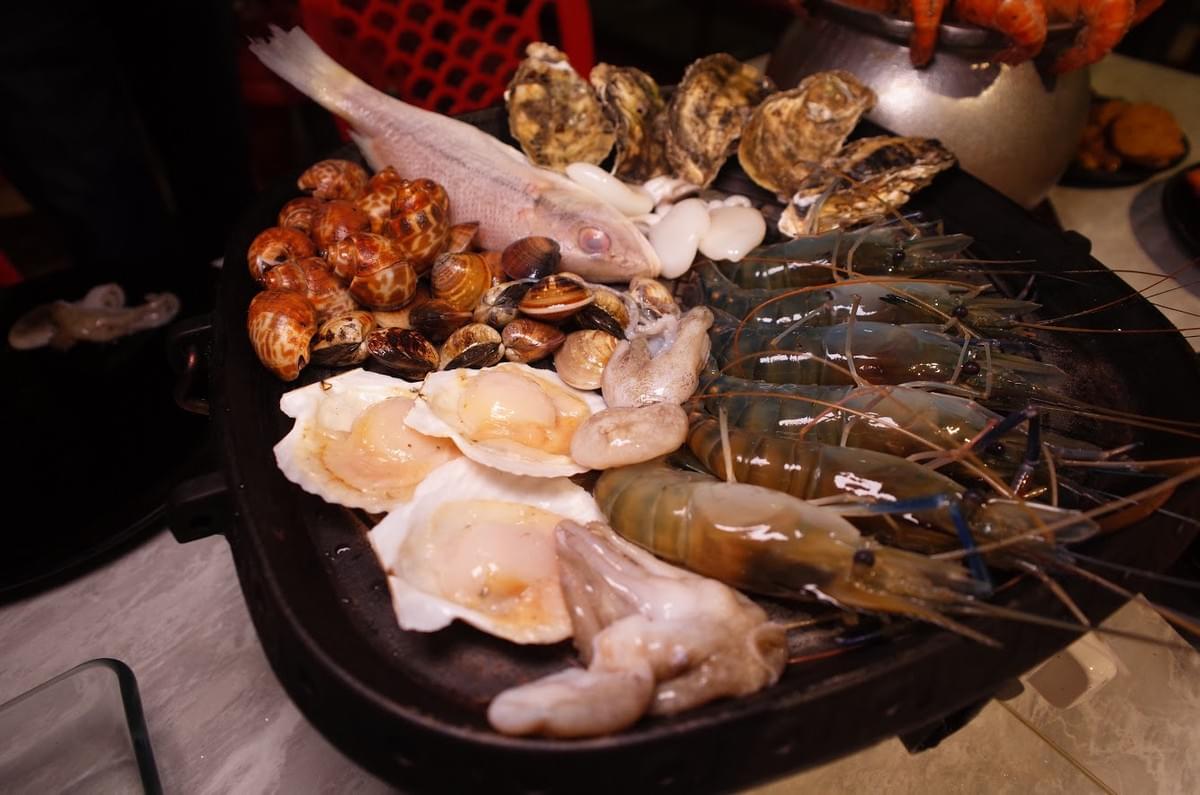 除了牛排的講究,自助區還有蛤蠣、生蠔、小章魚、透抽、扇貝、螺肉以及各式蔬菜、肉片等等供客人選擇,且每樣食材都是新鮮又大氣,完全沒在手軟的供應。