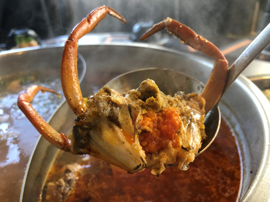 他的雞煲蟹都是一斤土雞肉加一隻紅蟳