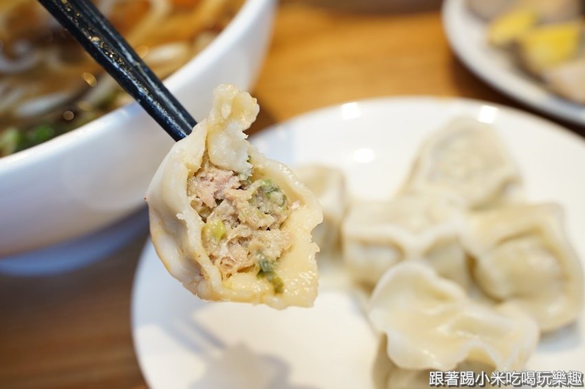 蔥肉水餃(一個8元),是店家自己手工包的,如果說不想吃太多的話,可以至少點5個,或是喜歡吃6個、7個、8個都可以。