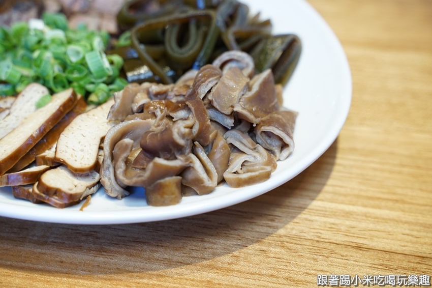 當然來到麵食館,滷味是一定要來手滑一下的啦!冷盤有豬耳朵(50元)、豬頭皮(50元),也是滷得軟嫩也不錯,然後尚可的滷大腸(65元),比較起來,小米個人比較喜歡他們的豬頭皮跟豬耳朵。