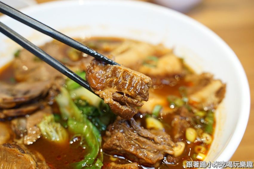 牛腩是用牛肋條,在烹煮方面非常的入味,而且也軟嫩有汁,其實光吃這個牛肉麵都是覺得還不錯。