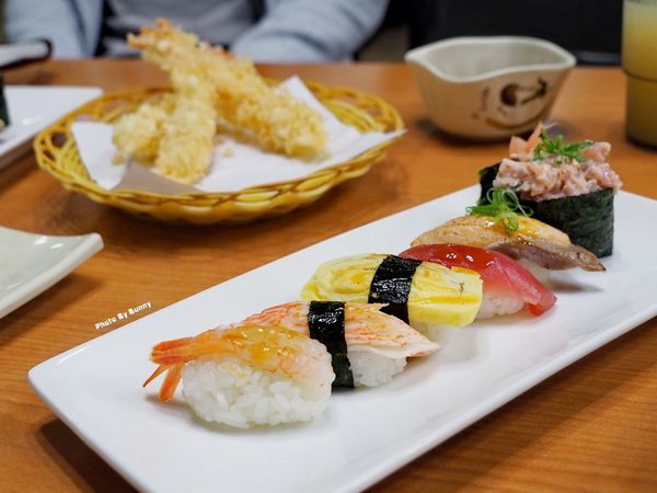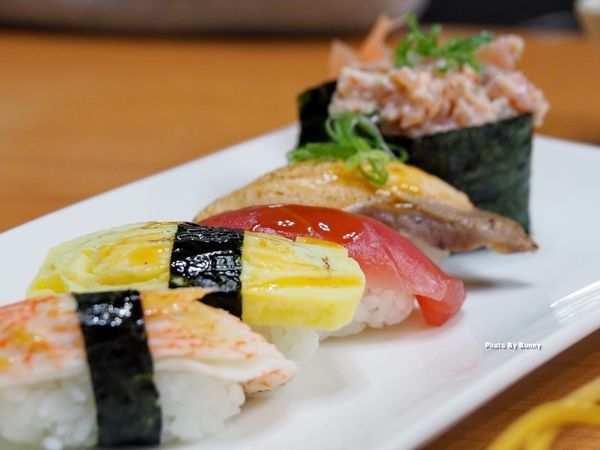 點了蔥花辣碎鮪、炙燒鮭魚、鮪魚、玉子燒、松葉蟹、甜蝦