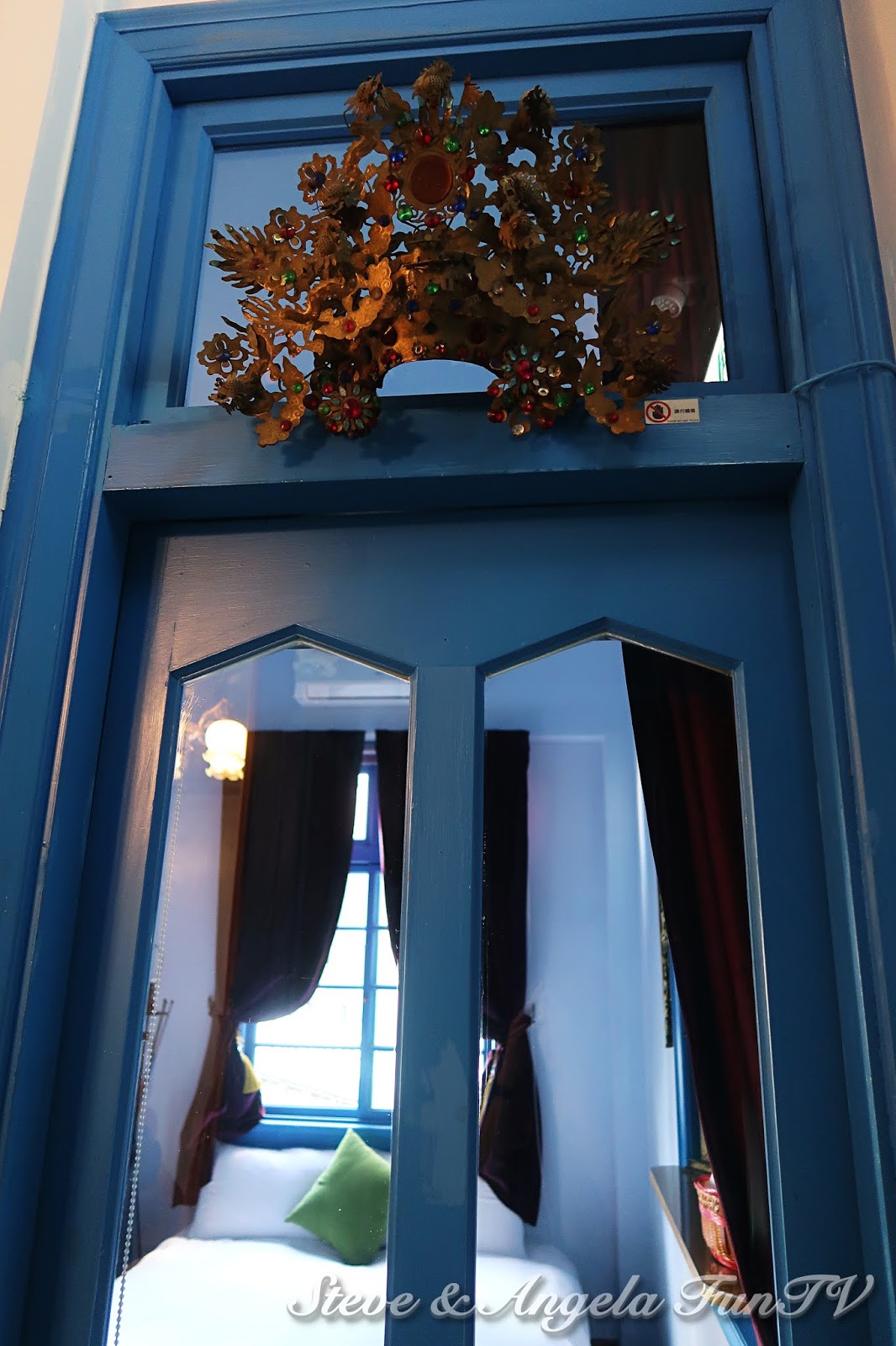 There are quite a few different rooms on the third floor. Each room has Chi Kan West House signature blue framed glass door and unique overhead decorations.