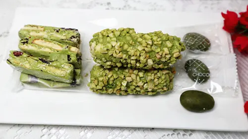 抹茶杏仁捲心酥內餡採用日本空運進口抹茶粉,比利時進口巧克力,雲林斗南越光米,美國進口的堅果製成