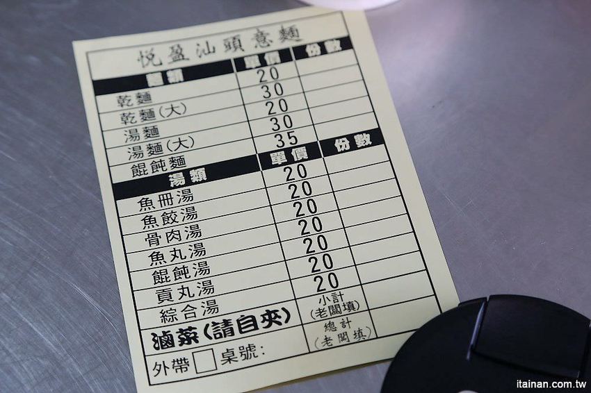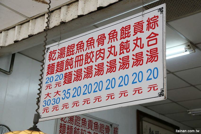店內湯麵乾麵小碗通通20元、大碗也只要30元、湯類一律20元、最貴的是餛飩麵35元,說真的現在連20元飲料都不容易見到了,一碗麵只賣你20元真的太便宜啦!!!