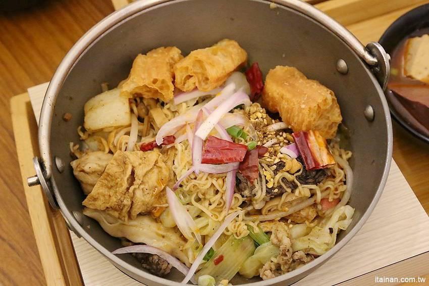 之前外帶都是點湯鍋,這次內用特別選了乾鍋試試,麻香四溢的香麻醬加入各式鍋料和蔬菜先拌炒過,整個上桌時香氣四溢。