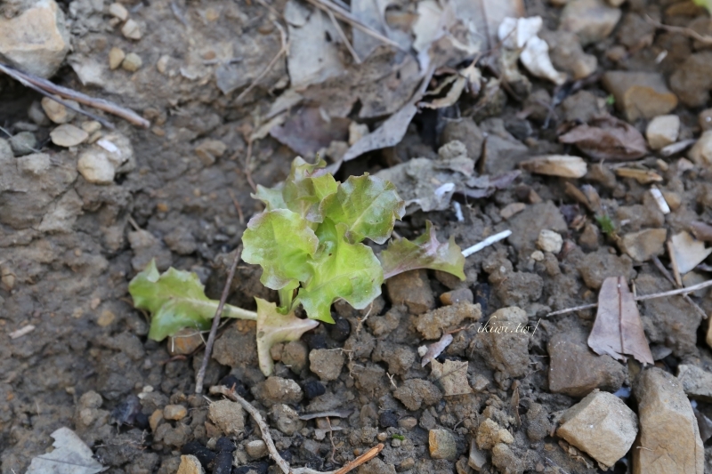 在這片漫草雜生的快樂農場中,只有連大哥才知道自己站的腳下是什麼樣的蔬菜,小小一株正是生菜剛種不久,搞不好晚一點就成了我們的盤中飧了。