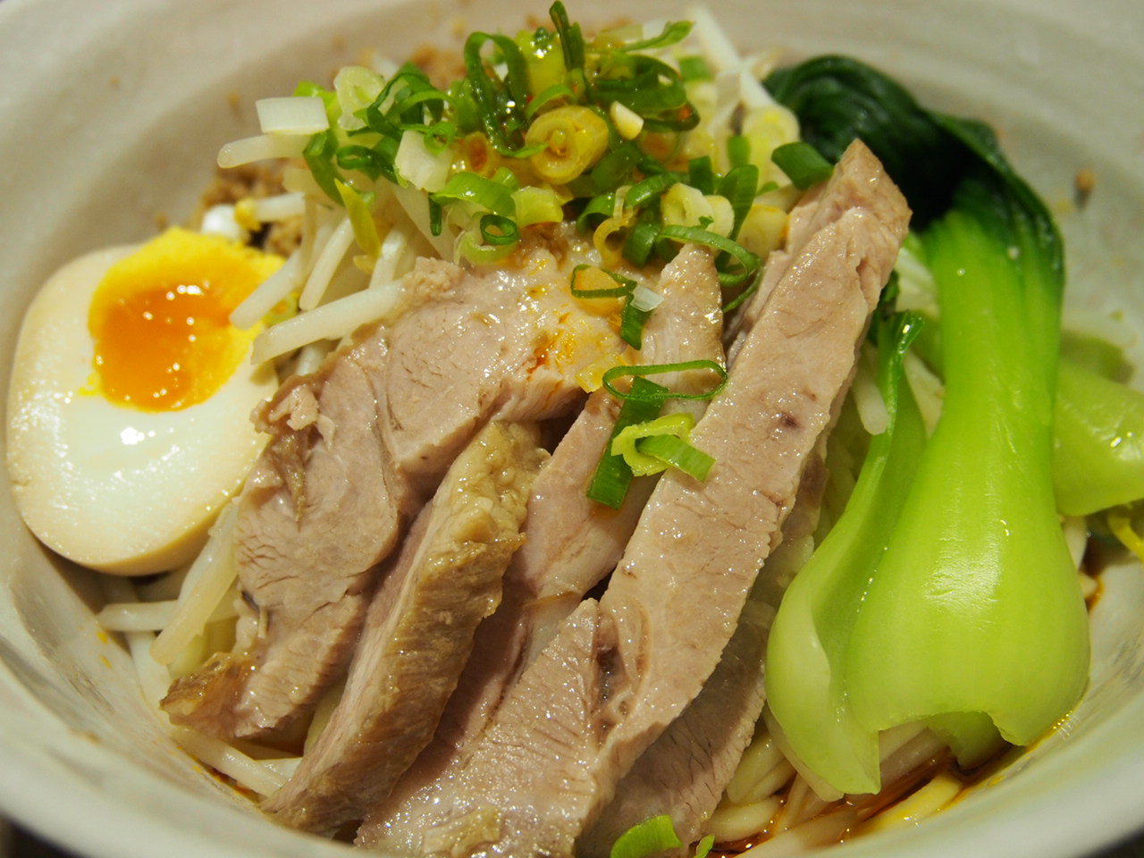 乾擔擔麵$180(配菜有擔擔肉末,豆芽菜,叉燒條,溏心蛋,以及青江菜,頗為豐富。拌一拌後,鹹香中帶些微辣,味道層次夠,非常好吃,大推!)