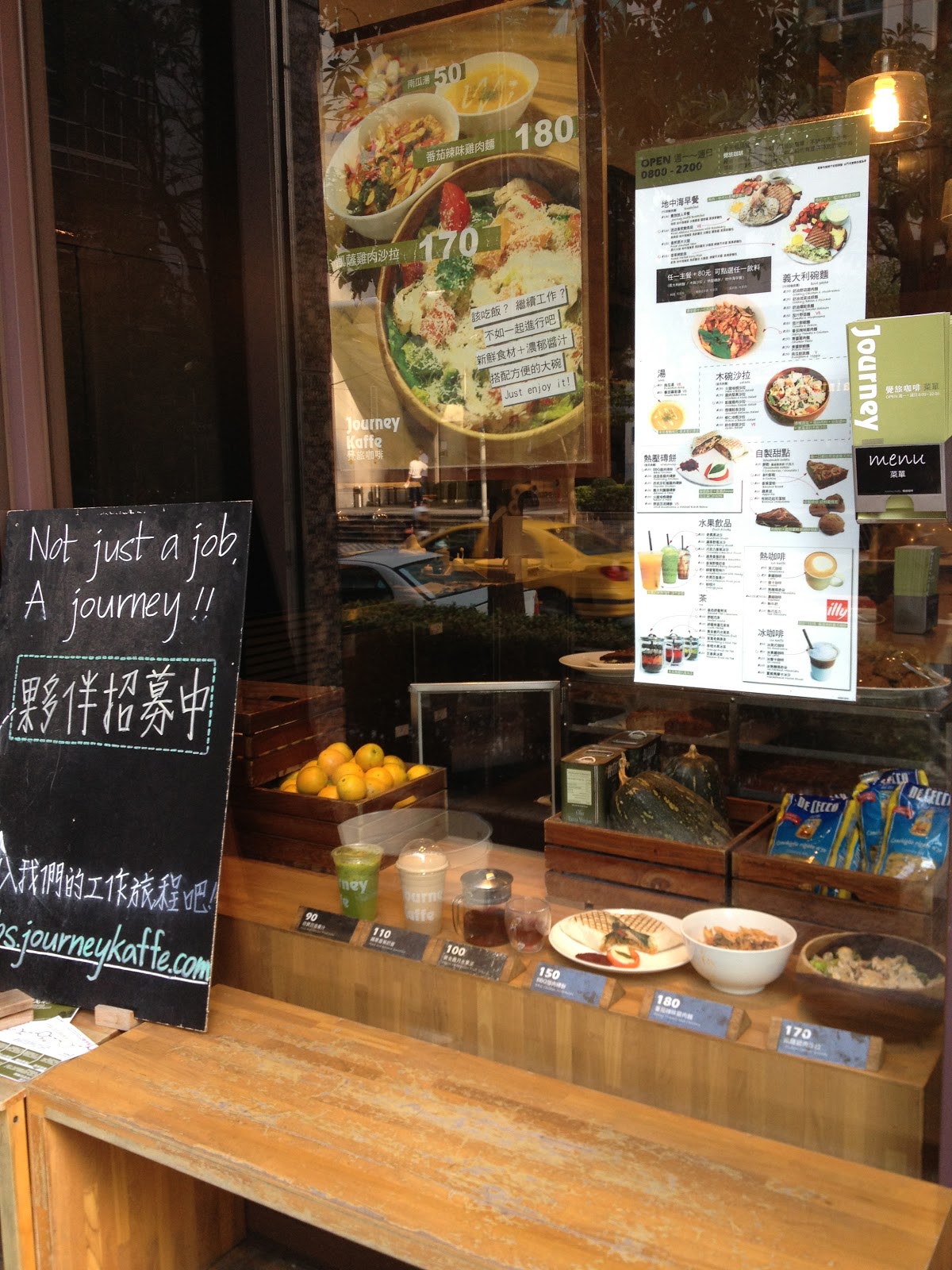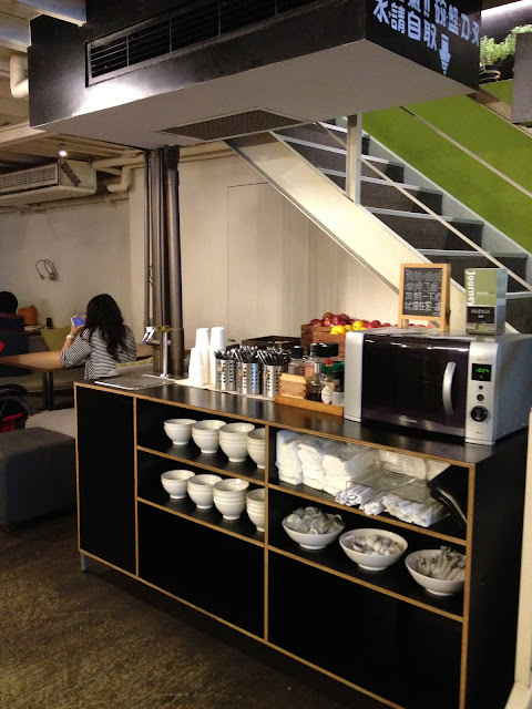 開放式廚房及隨處可見的新鮮備材,為的就是讓用餐者看得到製作過程及能隨時供應現作美味餐點、窩在這裡東西可以慢慢吃不急,冷了有微波爐可以再加溫、您不用擔心桌面不能同時擺下筆電及餐點,因為這裡的桌子..夠大、隨處可見不吝嗇的插座不必擔心做報告做到一半筆電沒電、樓上更有大沙發大抱枕及明亮空間可以舒服整個下午,這樣林林總總的細節都看得出覺旅的“堅持”與“照顧”。