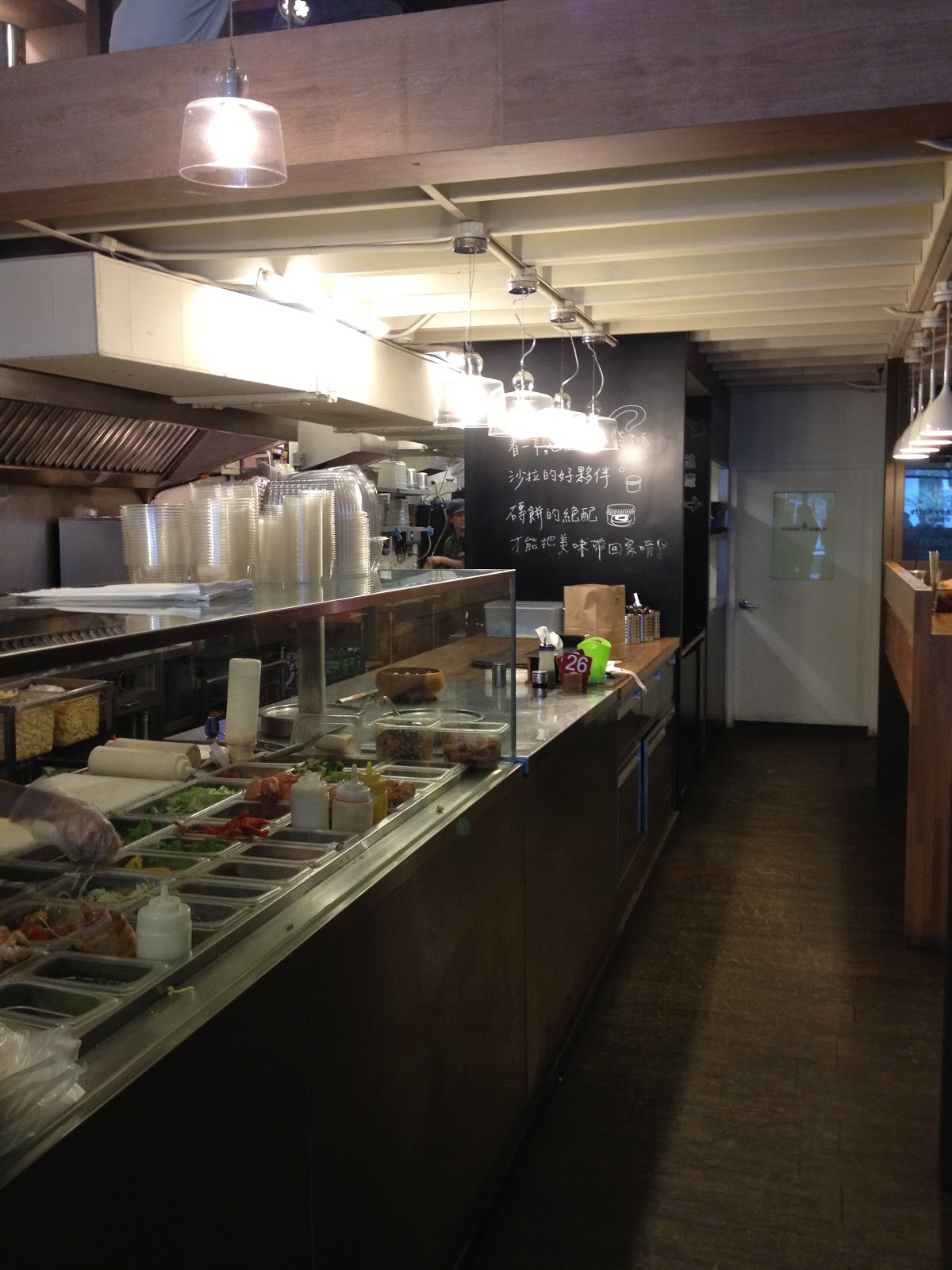 甫入店內就被挑高的前庭吸引住,原木色拼貼桌椅、芥末綠的主牆與黑灰色系地板及牆面的混搭風格不僅時尚且一派悠閒,利落的長條料理餐台及親切得像家人的服務生,輝映出熟練的專業模式。