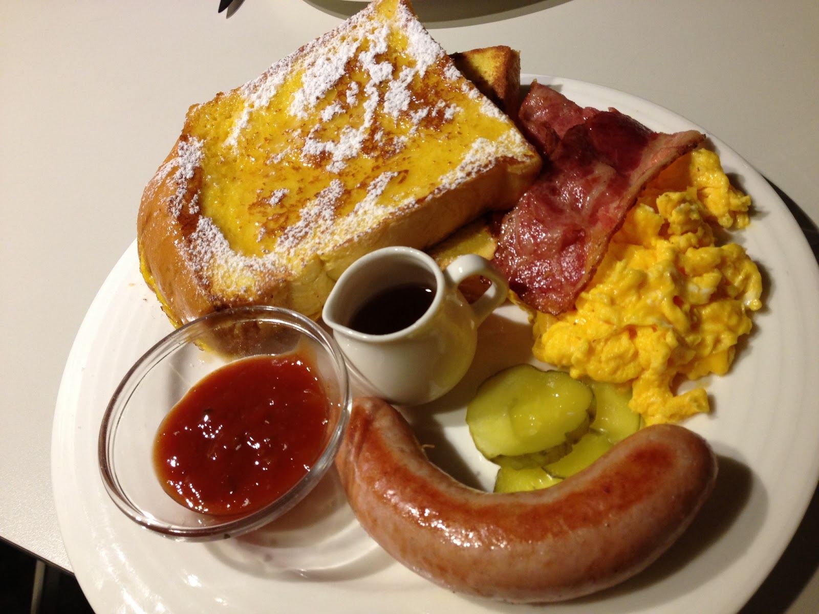 網路上滿多人推薦這道,確實也還不錯,太陽蛋如同網路上說的一樣煎得很好看,厚火腿也好吃,跟甜甜的布丁土司很搭配!如果覺得不夠甜的話可以加它附的蜂蜜(我是有加啦),至於醃黃瓜跟蜂蜜芥末醬我沒使用到就是了。