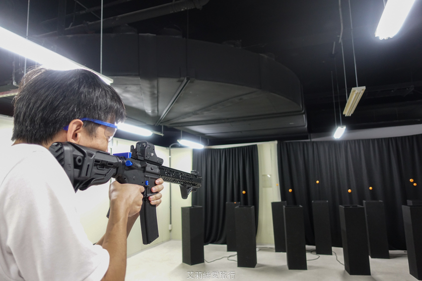 喜晶A光學觀光工廠準備了射擊遊戲讓遊客體驗,