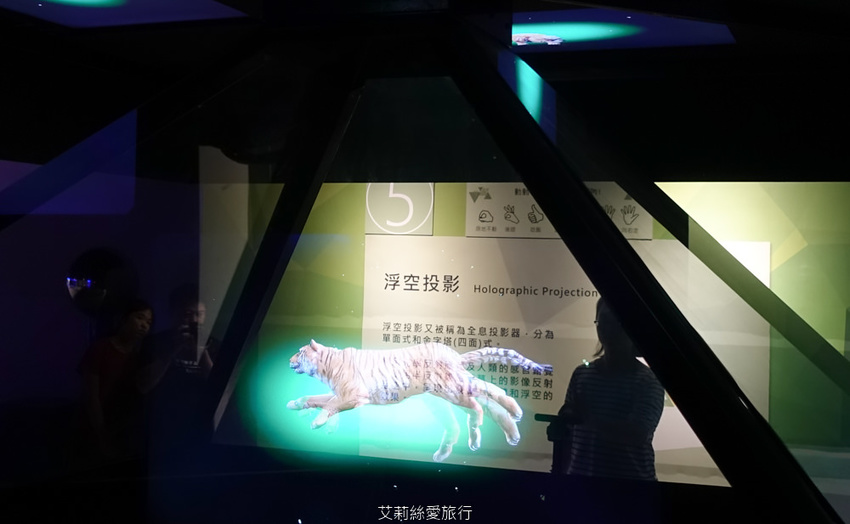 這是透過單面式浮空投影產生的恐龍動畫,而且還可以讓恐龍聽你的指令動作哦,光在這一區就玩超久的。