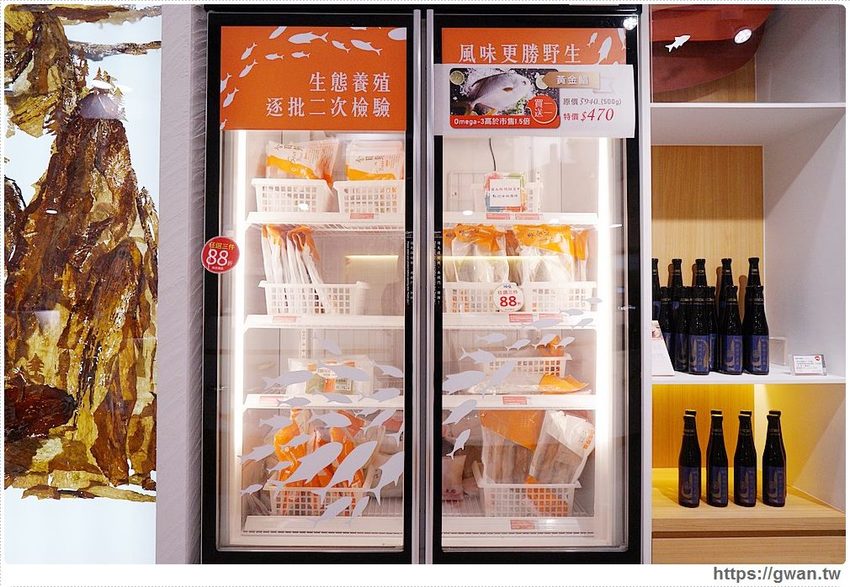 冰櫃裡的生鮮都是自家生態養殖的水產品,不僅飼養環境很講究,就連加工前都要再進行二次檢驗,營養價值跟風味都更勝野生
