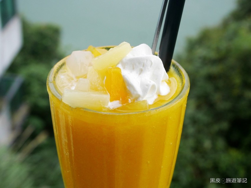 新鮮的芒果打成的冰沙,味道非常的濃郁,還可以吃到很多芒果果粒
