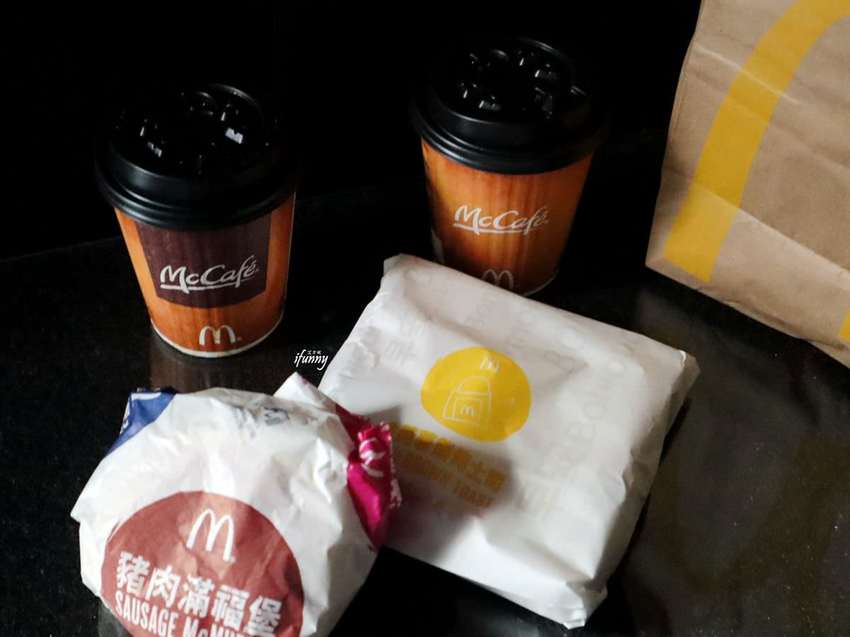 隔天一早就送到房門口就是我們所點的麥當勞早餐了!