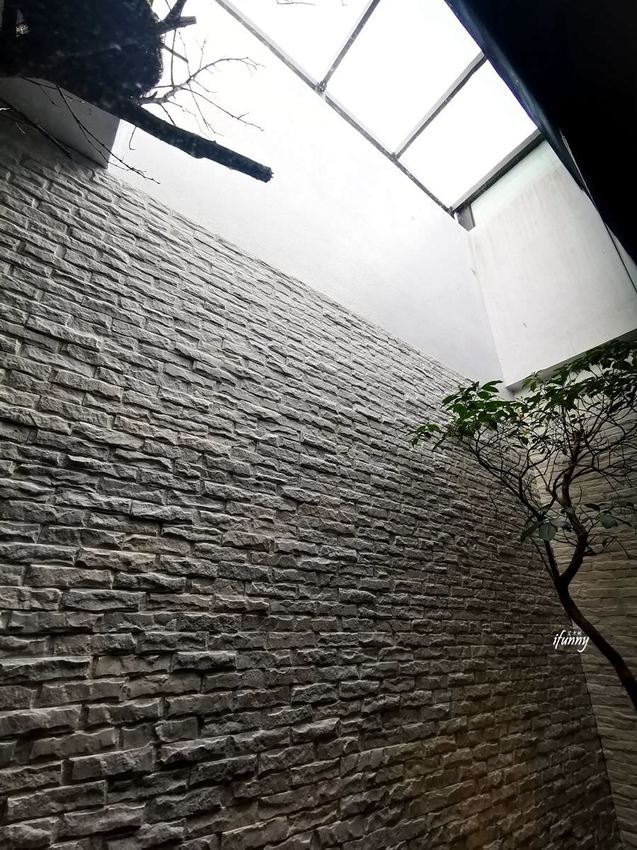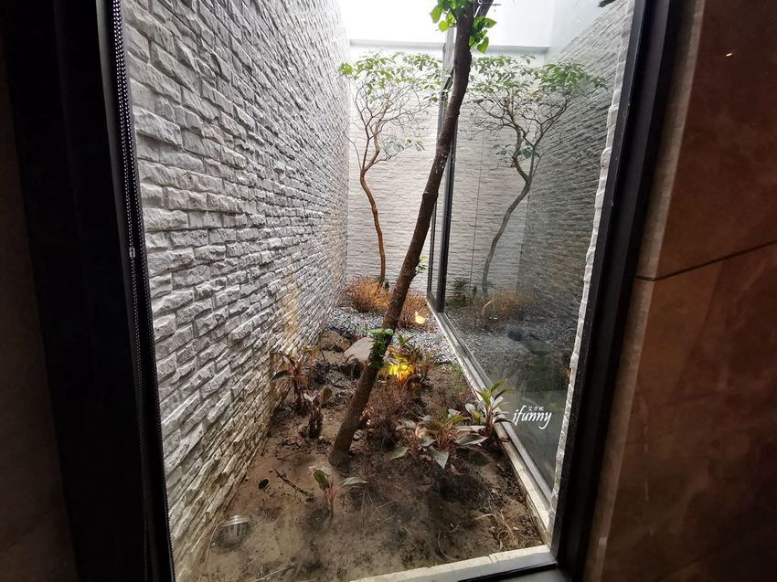 在小庭院往上看,是增高的隱密的空間,卻又能引進自然光線,這一點都不擔心安全或隱私的問題啊!