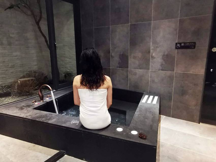 所以好姐妹立馬沖了澡就準備來泡澡了,這個浴缸相當大,估計可以容納一對夫妻帶著兩個小孩來此泡澡呢!