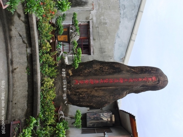 ▲庭院有一處刻著「伏見宮貞愛親王御遺跡鹽水港御設營所」的石碑,成為殖民統治的見證。