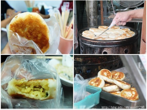 大約下午一點半到兩點左右,陸陸續續出現排隊等待的人潮,熱賣超過50年歷史,煎包口味有分甜的(花生)和鹹的(筍肉)兩種,不限客人購買數量,當下排在前面的幾位客人一買就是十個煎包起跳,這樣大家都知道為什麼要等那麼久了吧!但現包現煎的煎包風味真是好阿!尤其份量不小,用料食材新鮮,外層表皮香酥,不論甜或鹹的口味內餡都超優,咬下第一口熱氣和香氣瞬間竄出來,我終於知道大家會願意花時間排隊等待的原因了,當下又再排了一次,多買兩個筍肉煎包,打算帶回家當消夜。